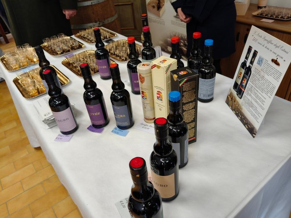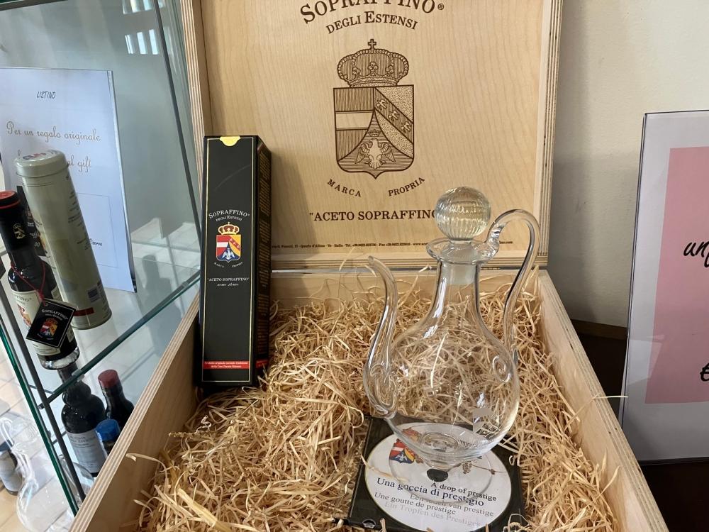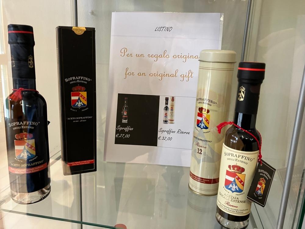 Nel complesso degli edifici dell’acetaia è presente anche un punto vendita, dove si sono potuti assaggiare i diversi tipi di aceto prodotti, dal più “comune” Vinagro al Solera, al Gran Cuvée, fino Sopraffino con 20 anni di invecchiamento e al Sopraffino Riserva, invecchiato 30 anni.