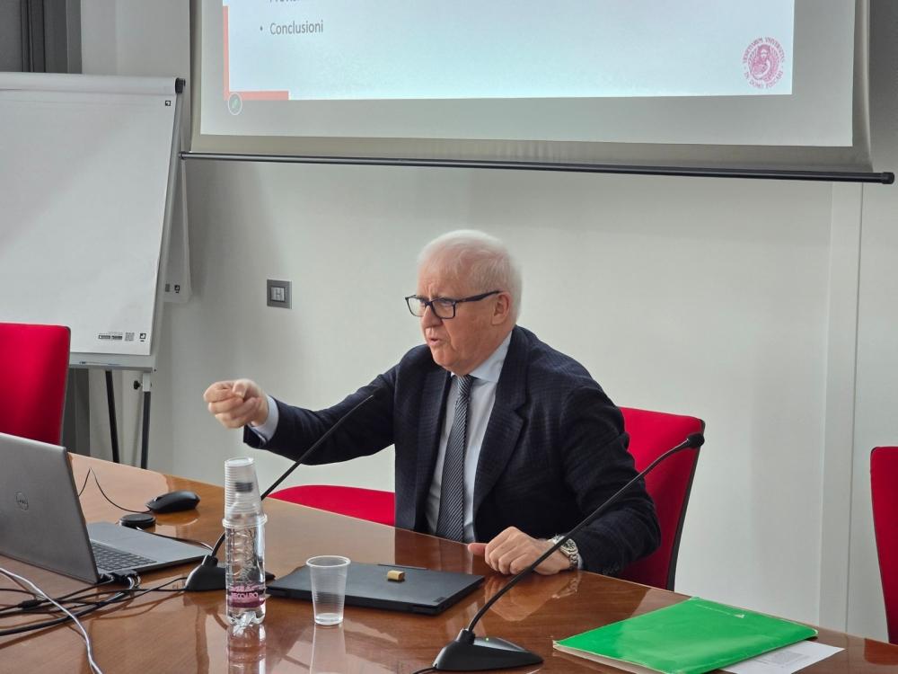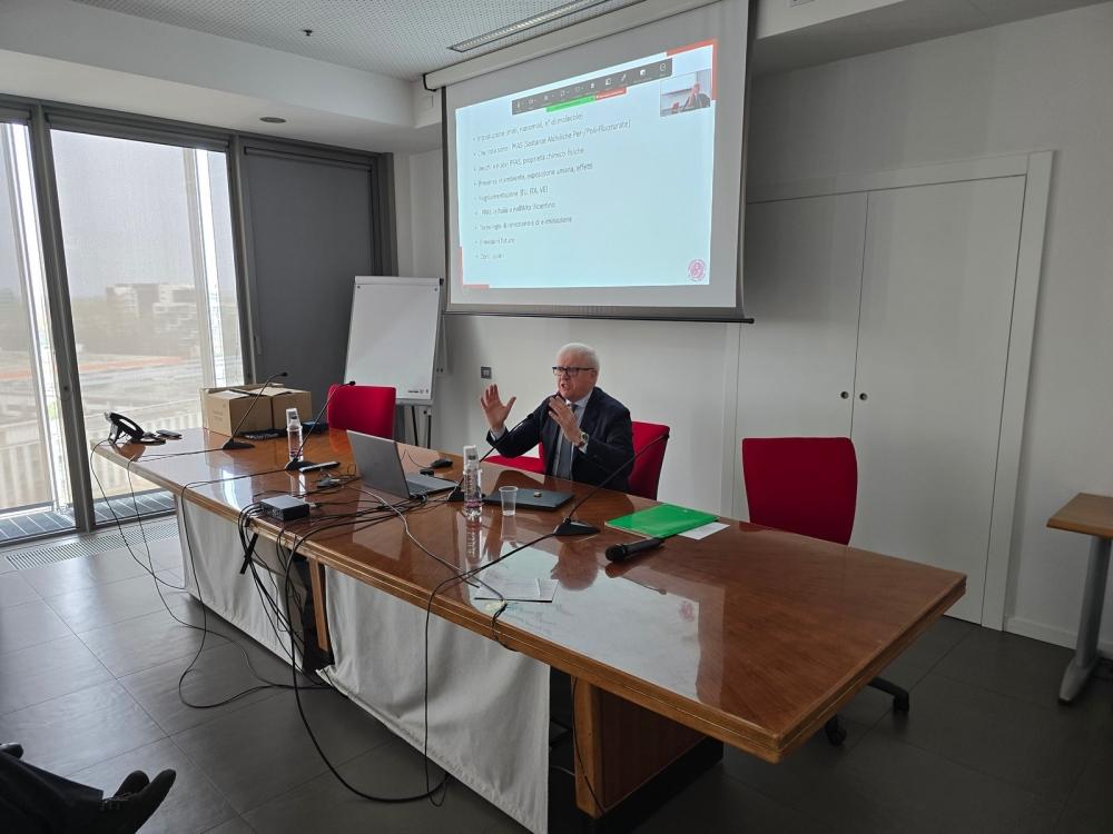 Infine ha chiuso la parte istituzionale una interessantissima conferenza della prof. Antonio Marcomini docente in chimica dell’ambiente e dei beni culturali presso l’Università Cà Foscari di Venezia dal titolo “PFAS nelle acque naturali e potabili, stato dell’arte, rischi e soluzioni: capire il problema, scegliere la tecnologia, garantire la sicurezza". I PFAS sono composti chimici di sintesi, resistenti all’acqua, grasso e alte temperature, utilizzati per la realizzazione di prodotti antiaderenti e tessuti idrorepellenti. Sono persistenti nell’ambiente e nell’organismo umano. Negli ultimi anni i PFAS sono stati al centro dell’attenzione scientifica e mediatica a causa del loro potenziale impatto negativo sull’ambiente e sulla salute umana.
