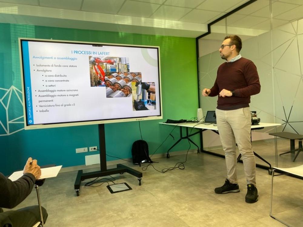 A seguire, Tiziano Rossi ha illustrato la produzione dell’azienda, che consiste in motori asincroni, servomotori e motori sincroni progettati per portare la massima efficienza energetica e precisione del movimento, fornendo alte prestazioni.