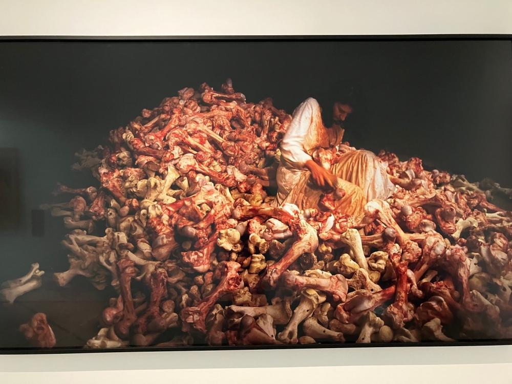 La mostra non si limita alle opere del pittore norvegese, ma spazia raffrontandole con altre di artisti suoi contemporanei, e anche molto più tardi, specialmente nell’ultima sezione, chiamata “L’urlo contemporaneo”, che prendendo spunto dall’opera più famosa dell’artista, “L’urlo” appunto, diventata un’icona simbolo dell’angoscia e del dolore, espone alcuni artisti contemporanei, come Marina Abramovich, Renato Guttuso, Emilio Vedova, Zoran Music, Shirin Neshat, che con le loro opere in qualche modo continuano le tematiche di Munch, denunciando le violenze e gli orrori della guerra, dei regimi totalitari, e in ultima analisi i drammi che l’uomo incontra nella sua vita.