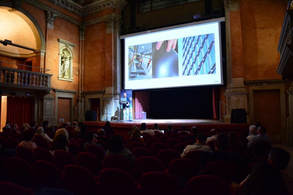 Un altro momento di grande rilievo è stato l’intervento di Joan Tarrús, che ha illustrato le ultime innovazioni di Sedak nel campo del vetro curvo tridimensionale. La possibilità di produrre pannelli multicurvi temperati, senza la necessità di stampi tradizionali, consente oggi di superare i limiti geometrici delle facciate tradizionali e offrire nuove libertà espressive ai progettisti.