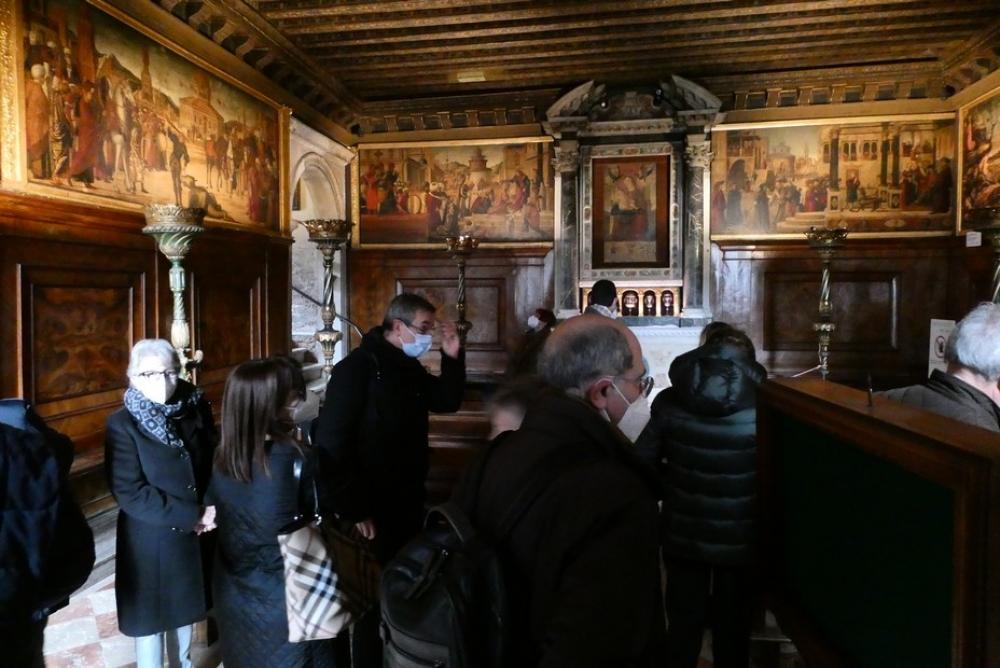 La Scuola Dalmata dei SS. Giorgio e Trifone, vulgo Scuola di San Giorgio degli Schiavoni, rappresenta una realtà unica nella storia della città di Venezia: è infatti un’associazione di cittadini di origini Dalmate, che da oltre cinque secoli ininterrottamente custodiscono dei capolavori senza tempo e tengono vive alcune tradizioni della madre-terra, sopravvissute alla stessa Serenissima. E’ interessante notare che, crollata la serenissima per mano di Napoleone, i confratelli riuscirono ad ottenere dal viceré Eugenio di Beauharnais il privilegio di mantenere la proprietà e la permanenza in situ delle opere d’arte che altrimenti sarebbero state confiscate e disperse; di conseguenza oggi possiamo ammirare uno degli interni i rinascimentali più importanti di Venezia, “com’era e dov’era”. Si veda la storia della scuola sul sito ufficiale.