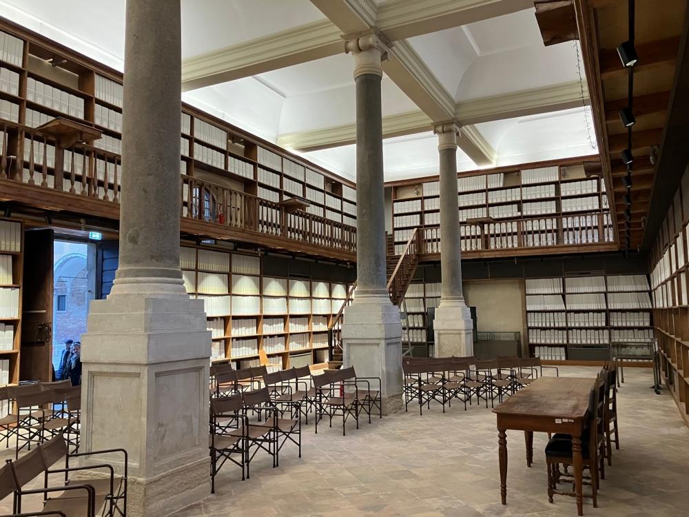 Dopo una introduzione sulla struttura e sulle attività dell’archivio, veniamo introdotti nel Refettorio d’estate, un’ampia sala ora utilizzata dagli studiosi che vengono a consultare i documenti conservati nell’archivio.