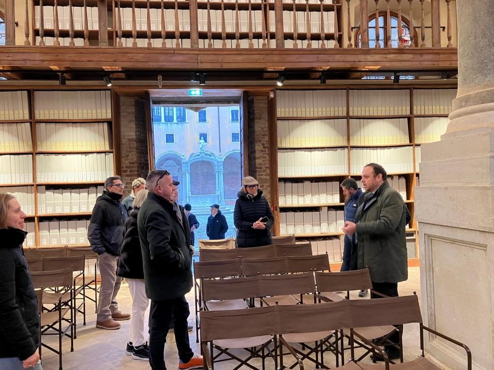 Siamo stati accolti dal direttore Andrea Erboso, che, assieme all’Ing. Alberto Lionello, ci ha illustrato la storia e le attività dell’archivio. Alberto Lionello ha lavorato a lungo all’interno dell’Archivio, per i numerosi lavori di restauro, che sono ancora in corso.