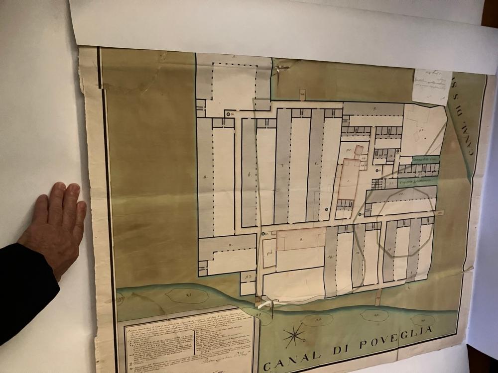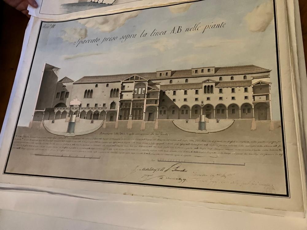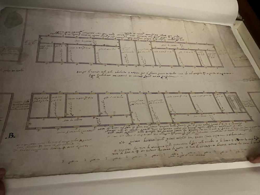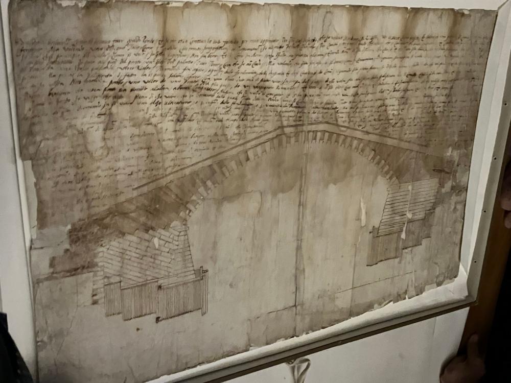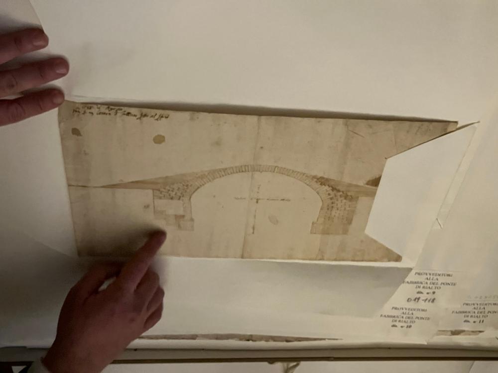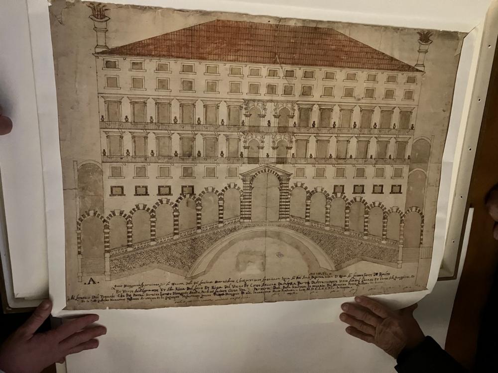 Da ultimo, il direttore ci fa vedere alcuni esempi di mappe e disegni progettuali antichi, tra cui i diversi progetti per la realizzazione del ponte di Rialto, risalenti al sedicesimo secolo.